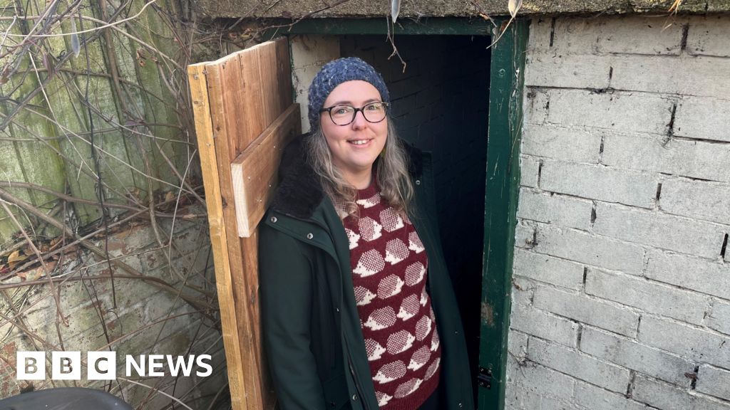 John Devine/BBCAn archaeologist said she was "delighted" to discover a World War Two air raid shelter in her back garden after removing some overgrowth.