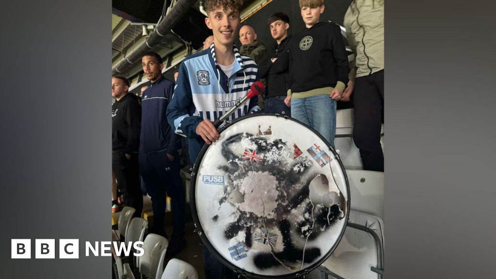 Cory Matthews, 22, provides the beat to Sky Blues fans' chants, but during a match against Swansea City, the banging came to a halt due to the puncture - the cause of which remains unknown.