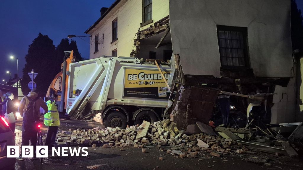 The crash happened at the junction of Mill Street, Bridge Street and Broad Street in Leominster, Herefordshire at about 06:40 GMT. The building was empty at the time.