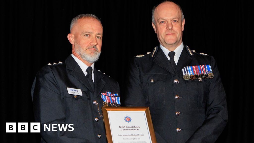 Parker, who works in Greater Manchester Police's roads policing unit, continued the chest compressions for a further 35 minutes to allow medical staff to continue with other life-saving treatment.