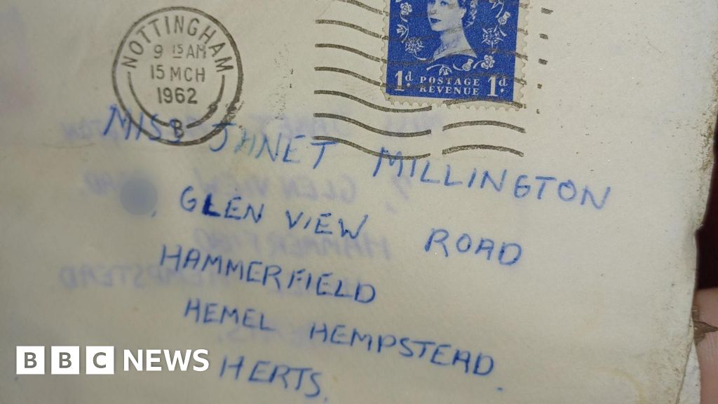 The cache of 32 handwritten letters, tied together with blue ribbon, were postmarked in Nottingham and delivered to an address in Hemel Hempstead, Hertfordshire, in 1962.