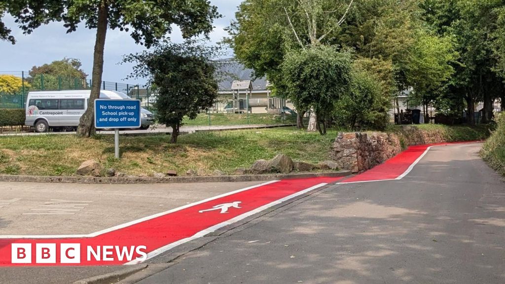 Red walkways have been painted along two roads La Croix and La Rue de la Haye des Puits near Grouville School.