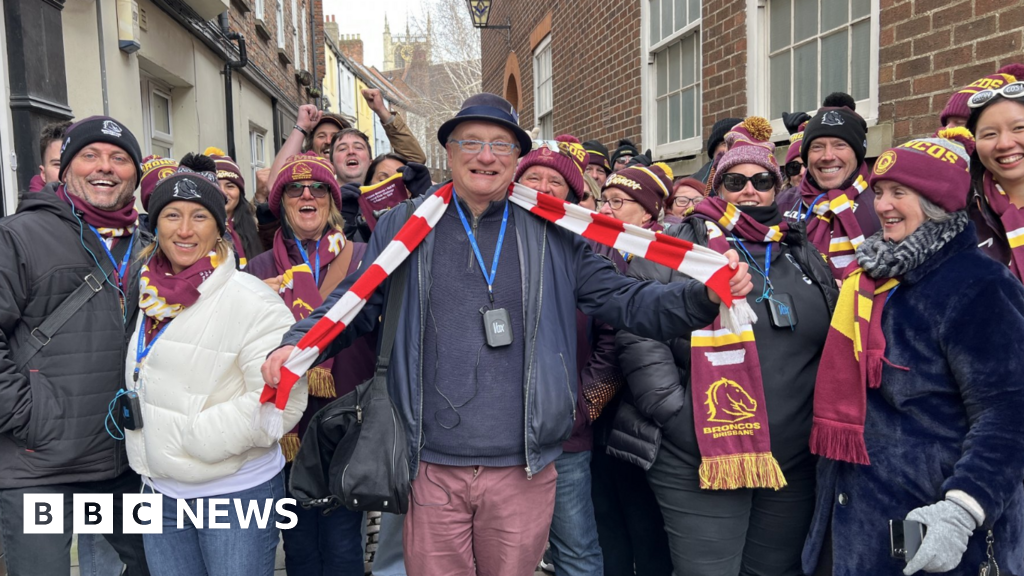 BBC / Amanda WhiteDozens of Brisbane Broncos fans have been given a tour of the city by a "massive" Hull KR fan ahead of a match between the two teams.