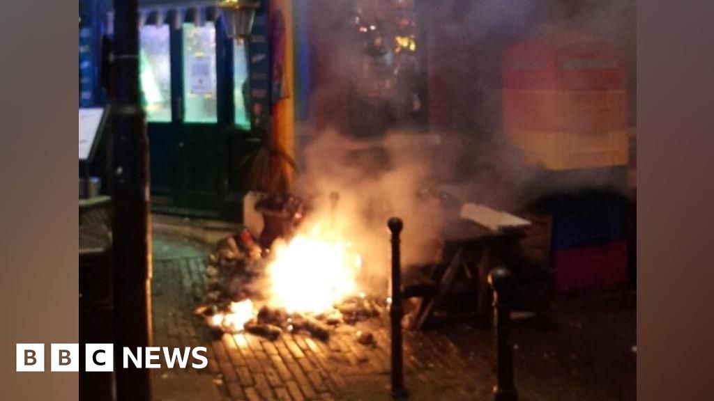 Avon and Somerset Police A pile of rubbish in flames outside of a shop on Corn Street in Bristol. The picture has been taken at night.Avon and Somerset Police