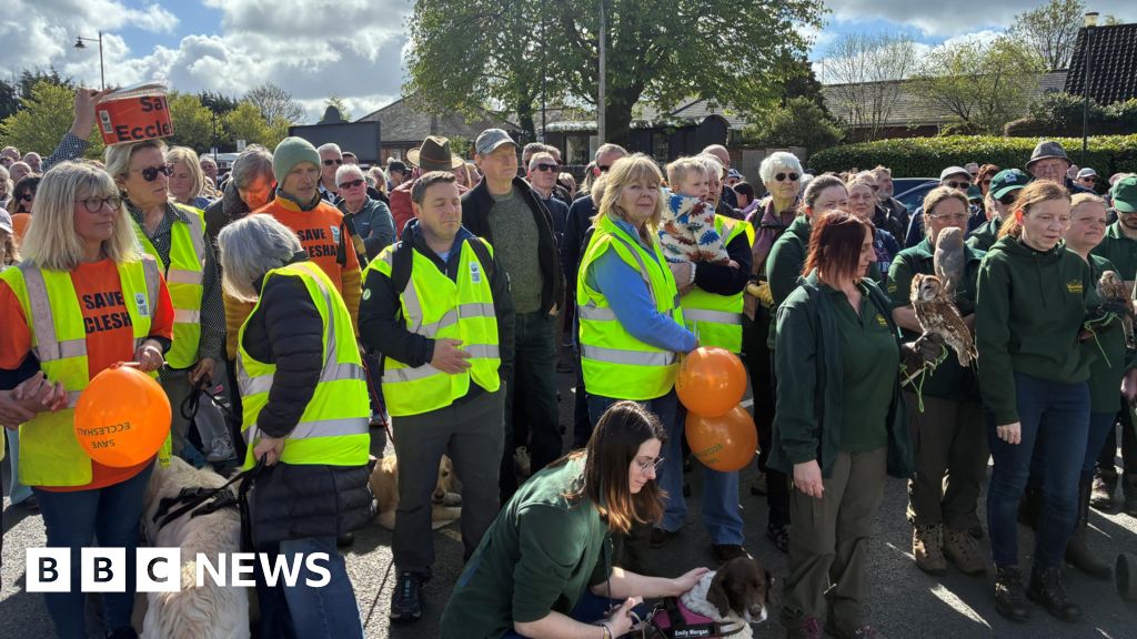 BBCHundreds of people have attended a protest walk opposing the number of planned new homes in a Staffordshire town.