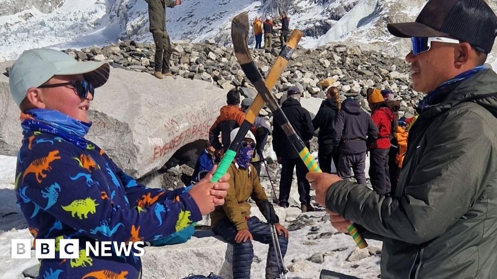 BBCShinty has reached new heights after a 12-year-old player made it to Everest Base Camp with his caman - and even had time to do a little bit of training with the shinty stick.