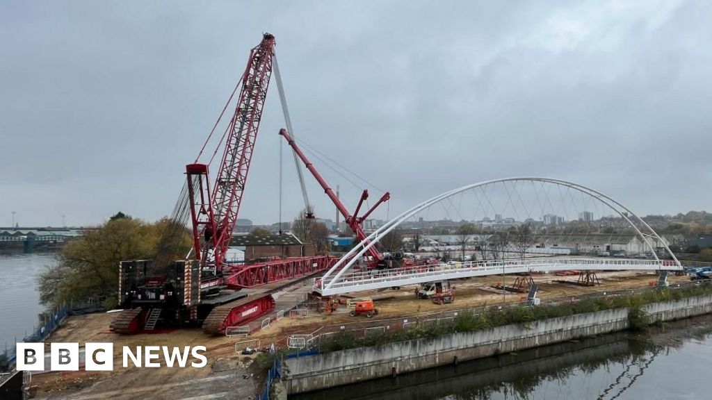 The 278ft-long (85m) Waterside Bridge is expected to be crane-lifted into place on Monday, weather depending.