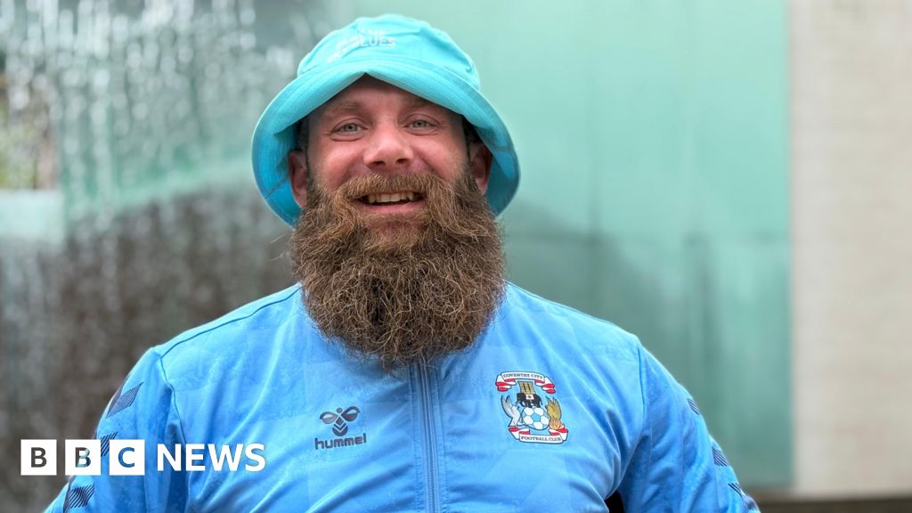 BBC A smiling Lee Worrall wears a Sky Blues hat and top with the club's crest on. He has a long beard. BBC