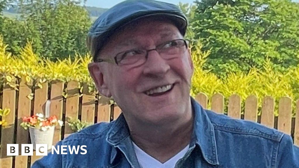 Police Scotland A man wearing a cap, a denim shirt and rectangular glasses sitting in a garden - he is smiling and looking off to the right of the cameraPolice Scotland