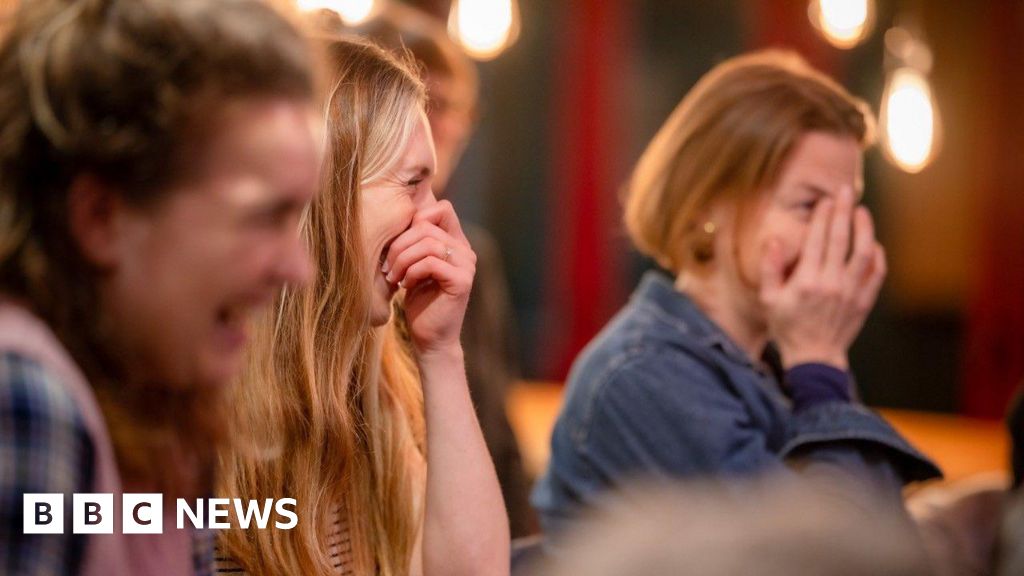 Tom Kay Three women in an audience laughing during a comedy gig.Tom Kay