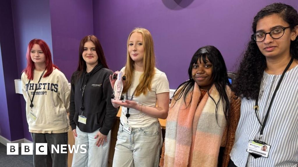 Annabel Amos/BBCA group of female engineering students have become the first from their college to reach the final of a national racing contest where teams design and race miniature Formula 1 cars.