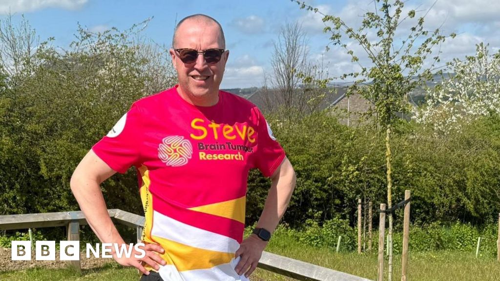 A man who discovered he had a brain tumour after he lost the ability to speak is running the London Marathon to help fund research into the disease.