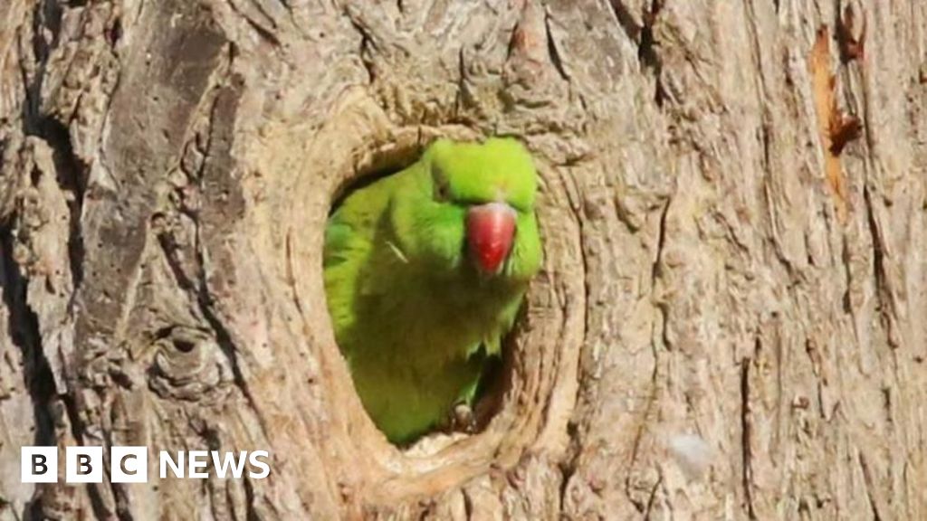 East Suffolk Council said workers found the green-feathered bird while carrying out work on the elm in Lowestoft Cemetery.