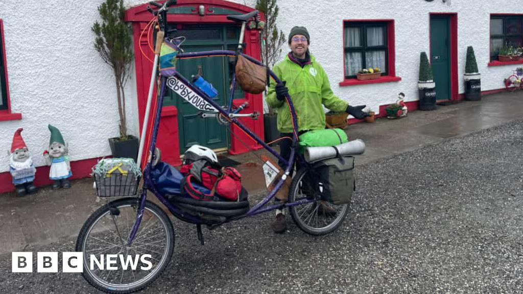 The man touring Ireland on a tall bike