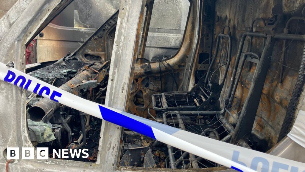 Manuel Owusu MensahThe Harding Street car park is open but the area around the van has been cordoned off by police with piles of tyres and broken glass littering the scene.