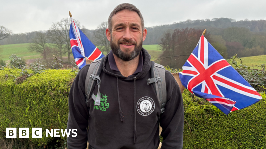 He left Ross-on-Wye on Monday and is aiming to walk about 30 miles (48km) a day to get to The Farmers Club in London on Friday.