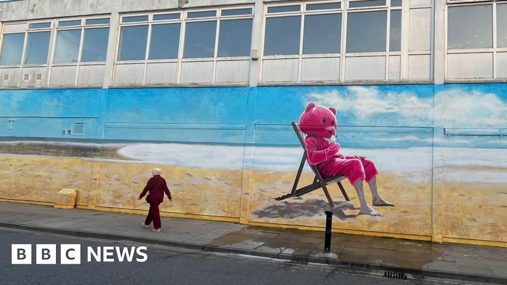 LUAPA giant mural of a pink bear sitting on a deck chair eating an ice cream has been unveiled in Cleethorpes.