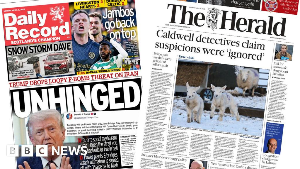 Scotland's papers: Trump warns Iran 'face Hell' and murder detectives 'ignored'9 hours agoShareSaveAdd as preferred on GoogleMore from Scotland's papersThe HeraldThe ScotsmanDaily RecordThe Scottish SunDaily MailScottish Daily ExpressThe TimesThe TelegraphThe NationalThe CourierThe P&JGlasgow TimesEdinburgh NewsScotland