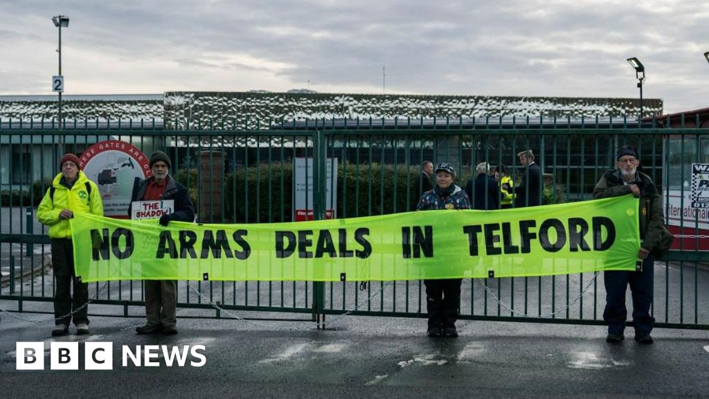 The group, from Extinction Rebellion, protested at the Telford International Centre (TIC) as the Specialist Defence and Security Convention UK (SDSC-UK) began.