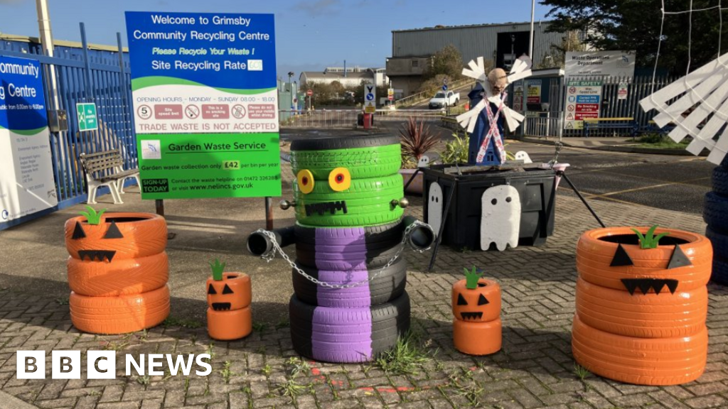 BBC/Lara KingStaff at a waste tip in Grimsby have given the site a scary makeover, using household rubbish, ahead of Halloween.