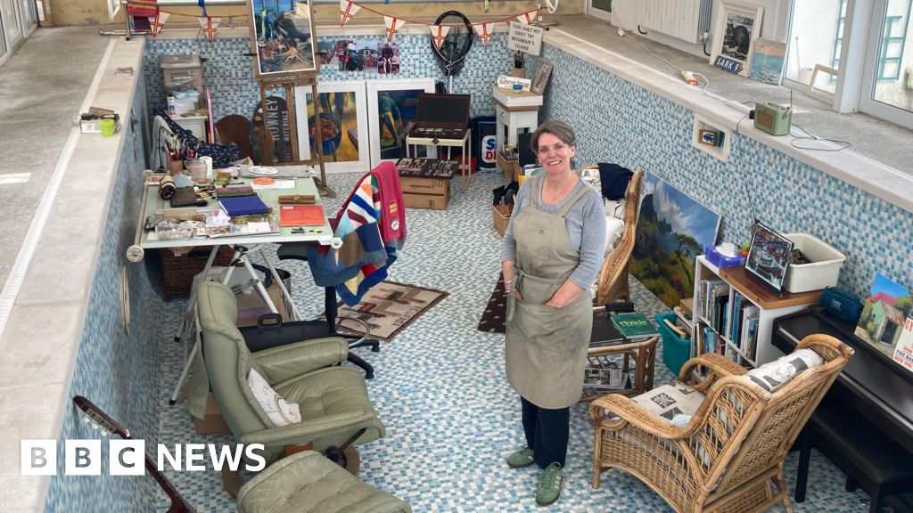 Rosanne Guille first started using the pool to store her art supplies but said she slowly "took over" the space, which is currently being used to create art for an exhibition about islanders with a connection to marine life.