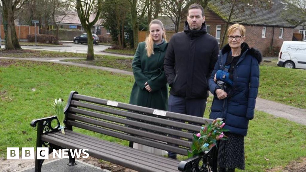 The memorial cherry tree and bench, near Little Searles Play Park in Pitsea, close to Basildon, Essex, have been put there in memory of siblings Roman and Darcie Casselden, who died on 1 February 2025.