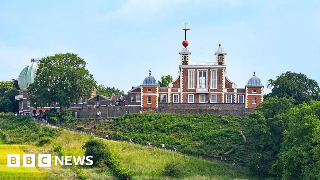 Getty Images A 17th century building sits on top of a grassy hill surrounded by mature trees. There is a green circular building to the side that houses a telescope. Getty Images