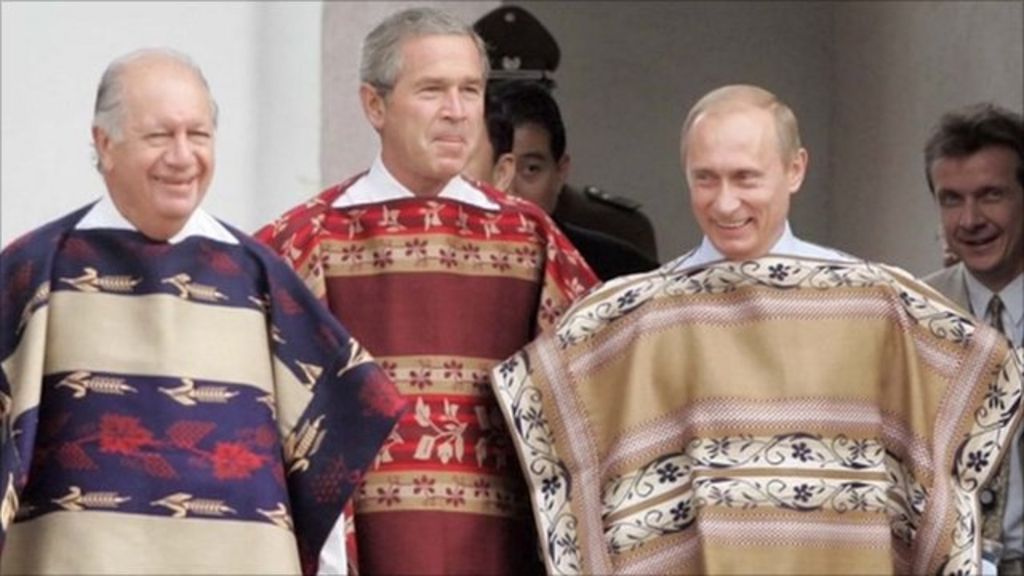 The tradition started in 1993, when then-President Bill Clinton handed out bomber jackets at the summit at Blake Island, Washington. Since then, the 21 APEC leaders have posed together in Javan batik shirts (Indonesia in 1994) to flowing ponchos (Chile in 2004).