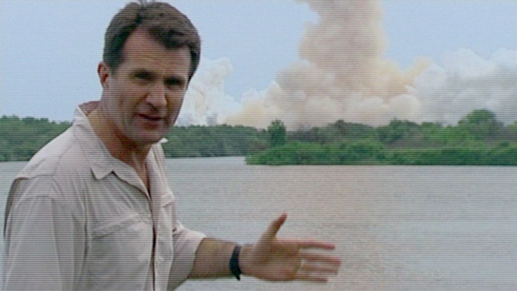 We were gathered there with hundreds of media people, all wanting to be a witness to this moment of space history. My cameraman and I chose a spot that was clear of other people, with a nice view of the launch pad, across a swamp.