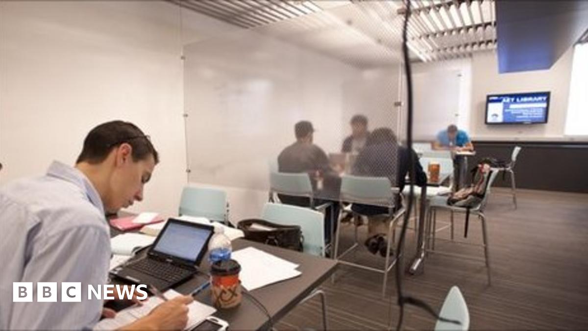 The sleek glass library seats 80 people and holds 425,000 e-books and 18,000 e-journal subscriptions. And there is no need to share because all these budding engineers can read the same text at the same time.