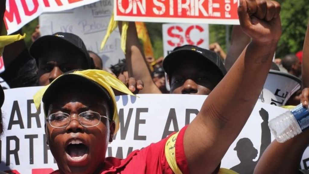 McDonald's workers are demanding a "liveable" wage of $15 (£9) per hour in the US. Currently, McDonald's employees make $8 per hour.