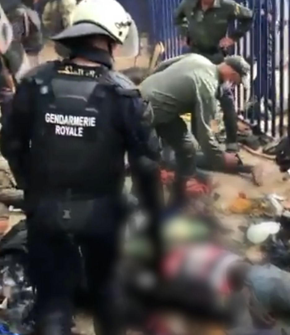 In the hours-long chaos, many of the migrants were beaten, and crushed between an 8m-high (26 feet) fence and Moroccan border guards, who deployed batons and tear gas. Videos circulated online show dozens of people packed in one area of the border post, some lying motionless, some bleeding, others visibly in distress.