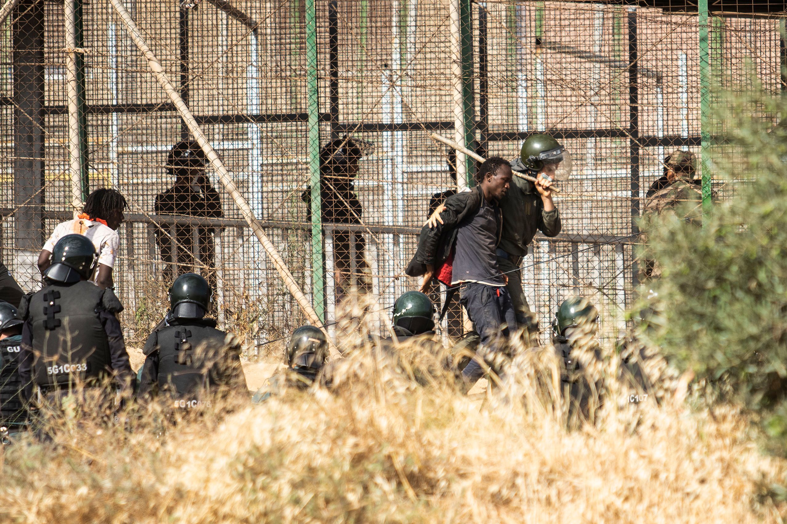 - Moroccan police entered Spanish land to take migrants back, and some migrants were beaten while Spanish border guards watched on