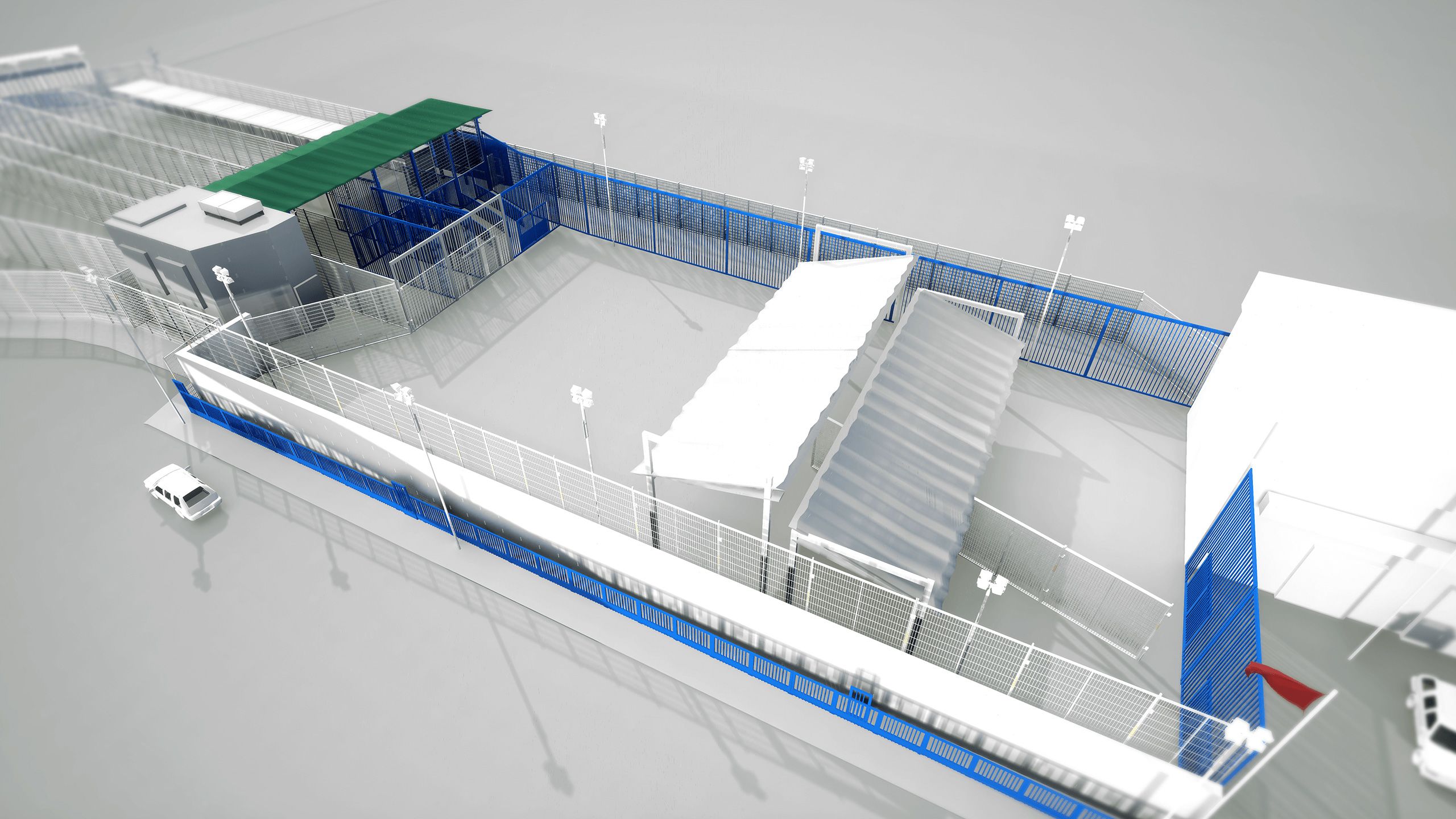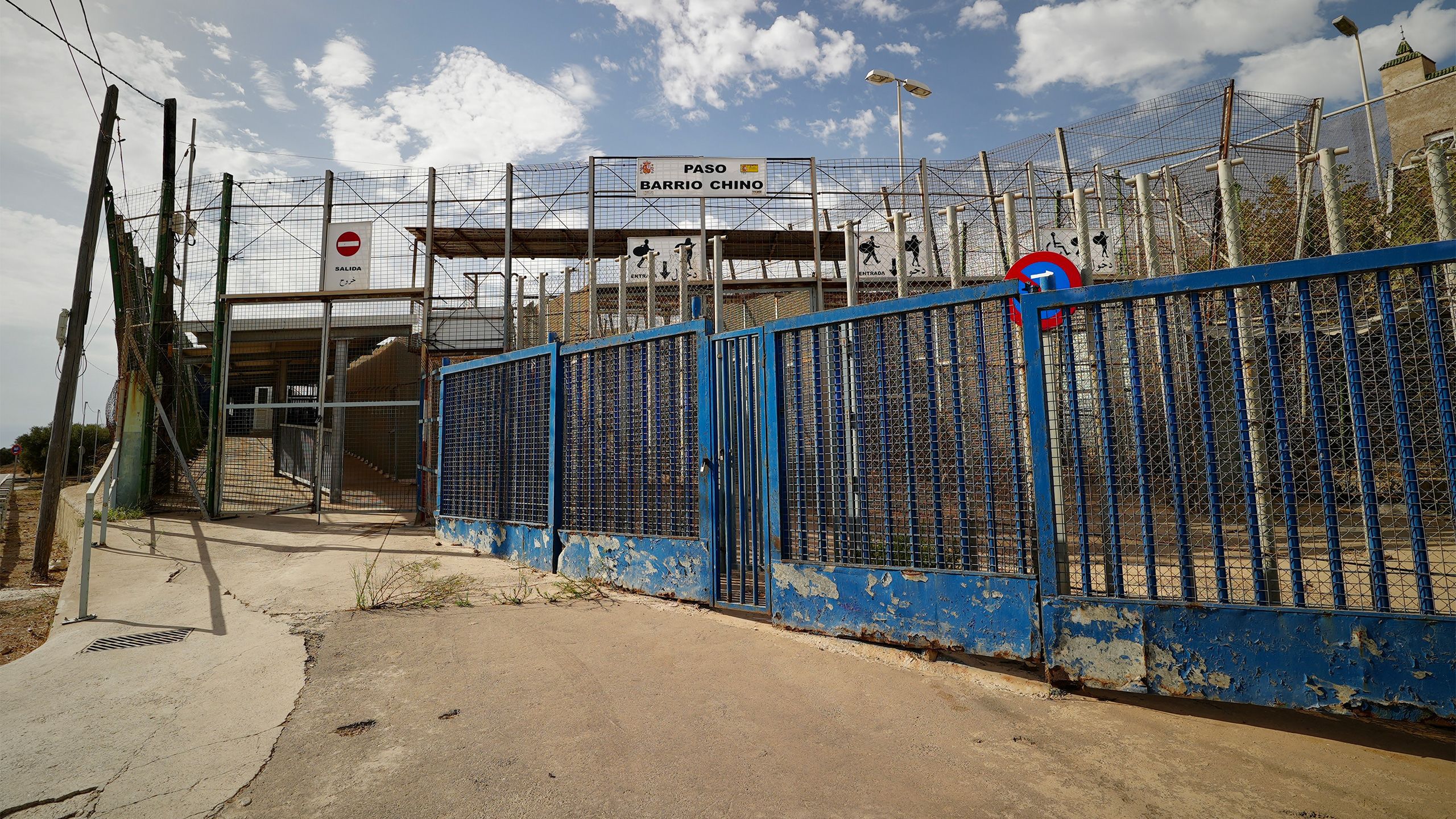 Barrio Chino is a large structure that feels and looks like part of an old football stadium terrace. On one side there is the Spanish entrance leading to secure turnstiles and a metal fence. This looks out to a courtyard - a place the Spanish Guardia Civil refer to as no man's land. Again, this is enclosed with metal fencing. On the far side, is the Moroccan entrance.