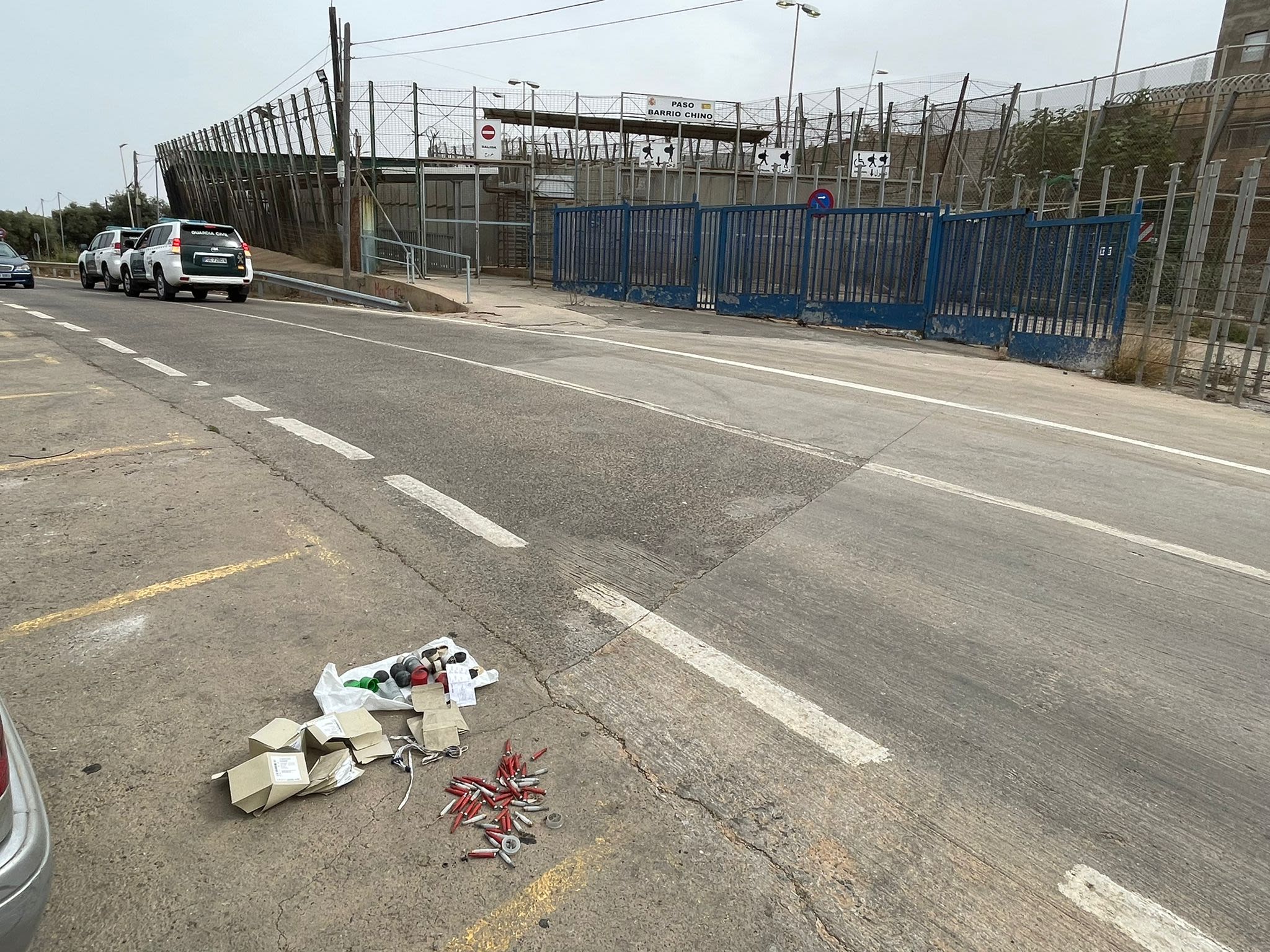 This is the same blue gate we stood at with the Spanish Guardia Civil.
