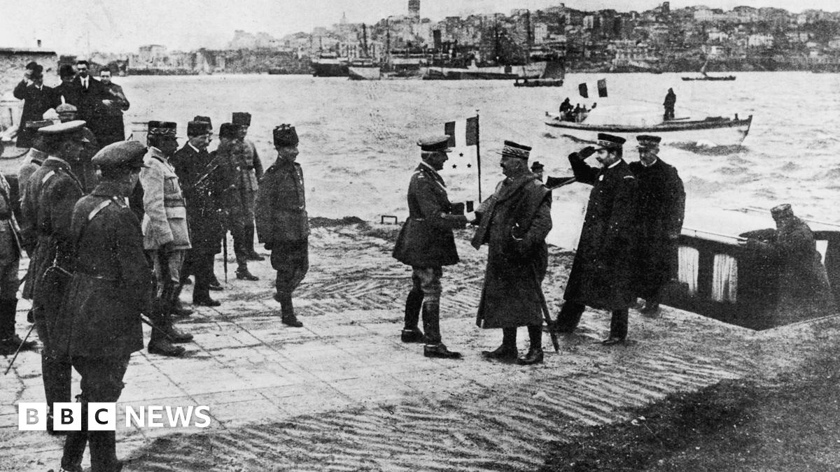 French and Turkish military officials meet after the defeat of the Ottoman Empire