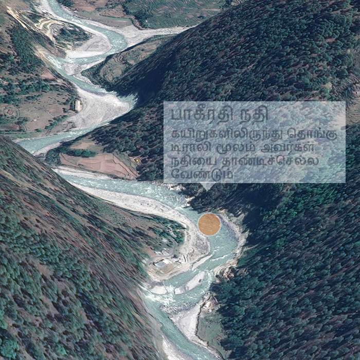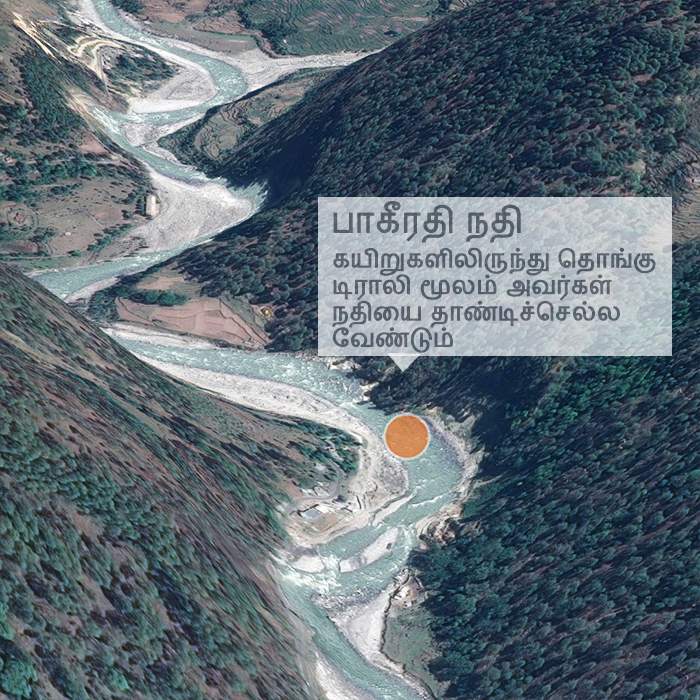 பயணத்தின் மிக கடினமான பகுதியை இரண்டு மணிநேரம் கழித்து பாகீரதி நதியை கடக்கும்போது சகோதரிகள் எதிர்கொள்வார்கள்.