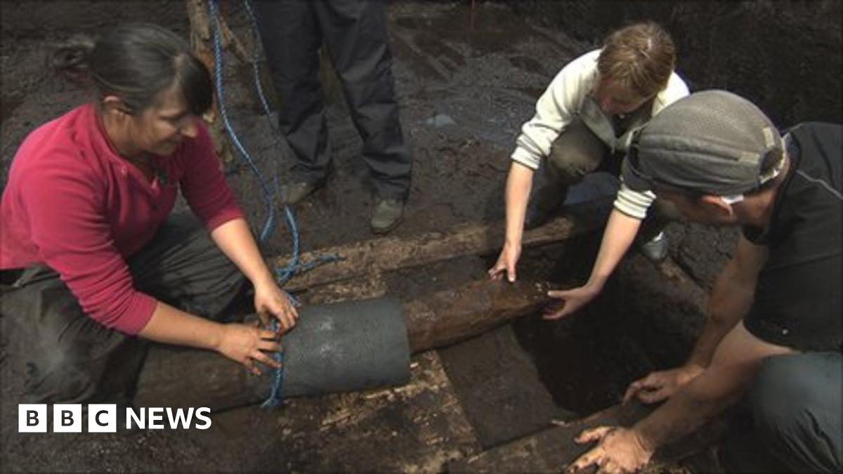 Discovered in June last year, the recently excavated timbers form a 4m-wide (13ft) route, running for 500m across wetland right up to the river. There have been two previous linked finds nearby including one on the other side of the river and another running alongside it.