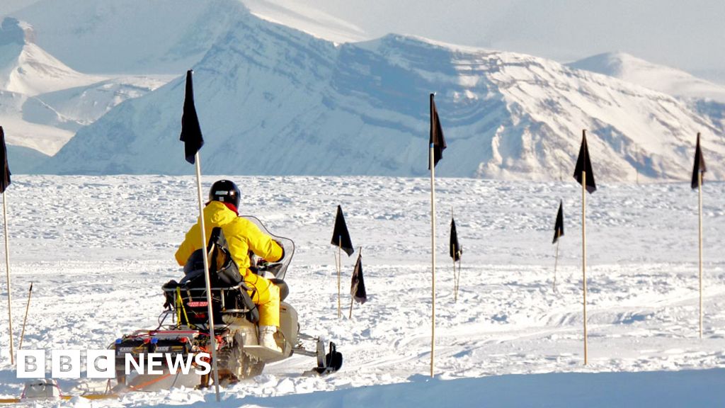 The team's equipment, adapted from mine-detection technology, was dragged behind a snowmobile across a simulation field set up at the Ny-Ålesund research base on Svalbard in the Arctic.