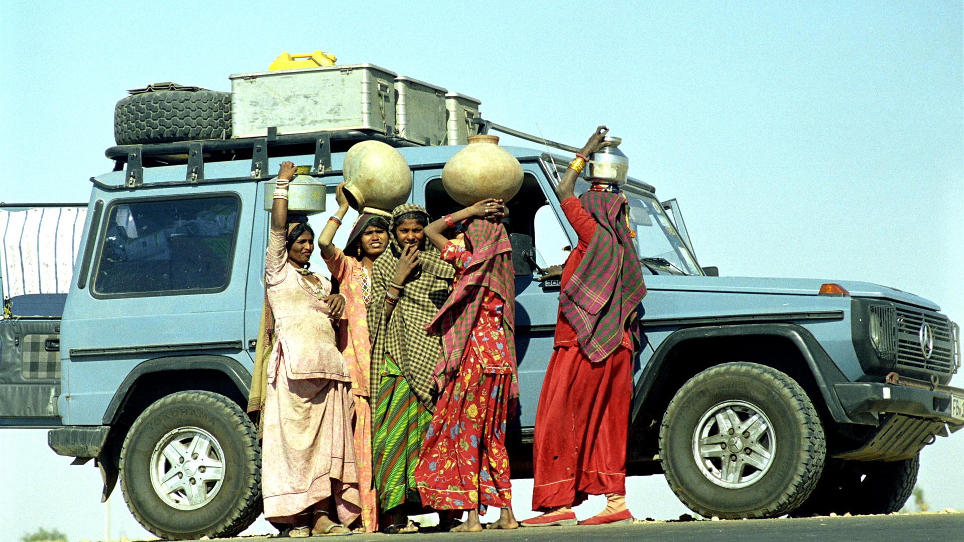 It took three days to sort out, with Holtorf and Christine eventually agreeing to give a man a lift in return for permission to enter the country. This strategy was occasionally repeated. Once three soldiers were squeezed into the passenger seat, each carrying a Kalashnikov. On other occasions passengers stood on the rear bumper - but Holtorf always refused to have people sitting on the roof.