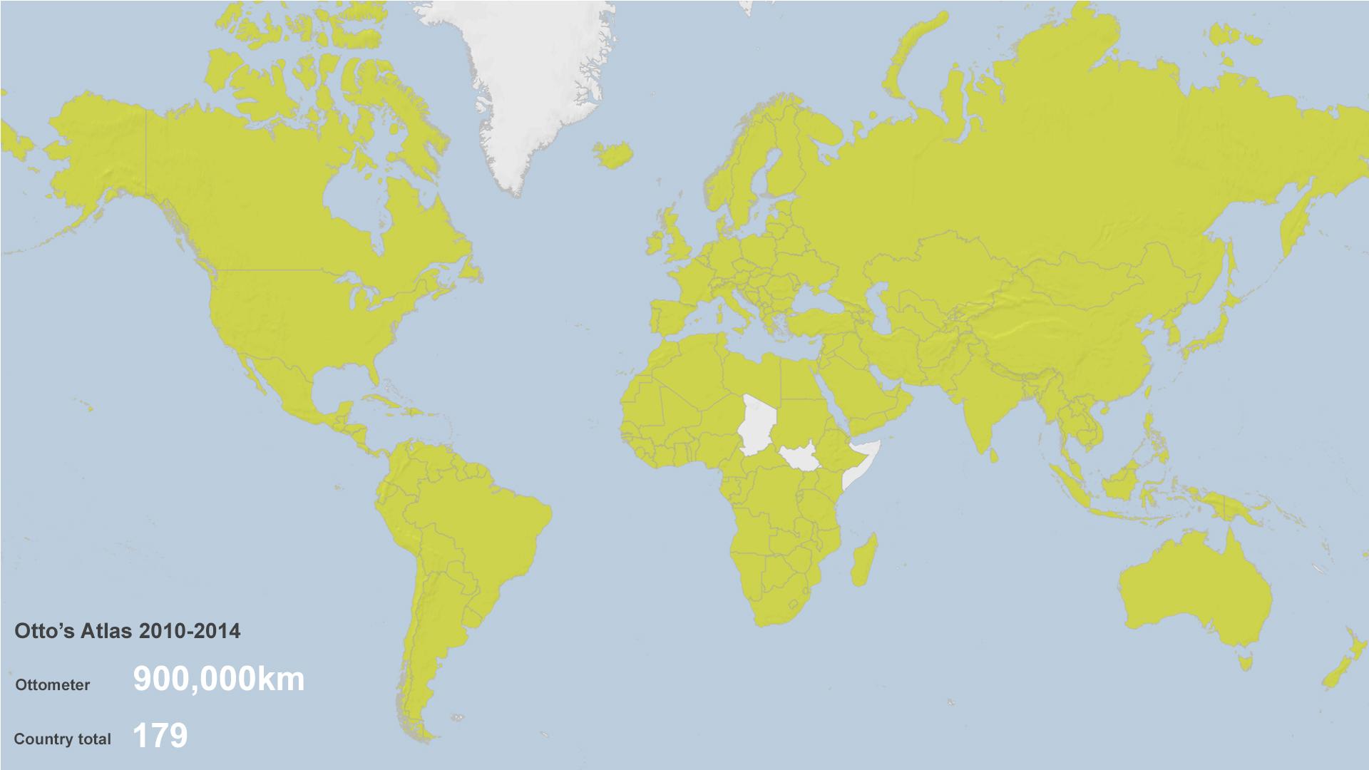 Scanning the list of 193 UN member states, plus Taiwan and the Vatican – which together make up the 195 countries recognised by Guinness World Records – one finds only 16 countries missing from Otto’s itinerary.
