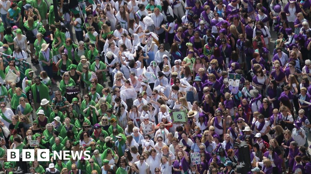 Getty ImagesWomen across the UK have marched together to create a living artwork, to mark 100 years since the first British women won the vote.