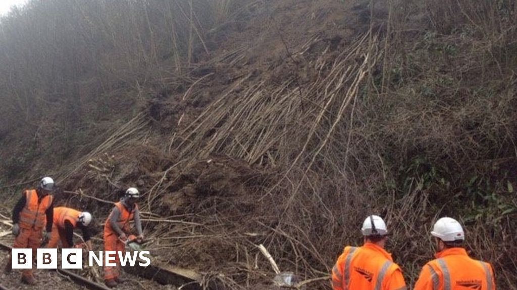 Network RailA landslip is blocking a railway line between the East Sussex coast, Kent and London.