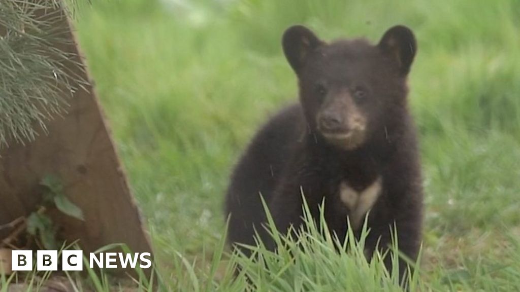 Woburn's black bear cubs take first steps out of den