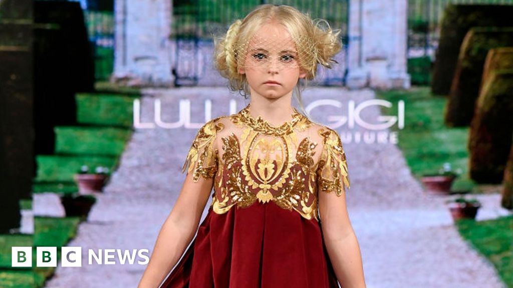 Getty ImagesA nine-year-old model who had both legs amputated as a baby has walked the runway at New York Fashion Week.