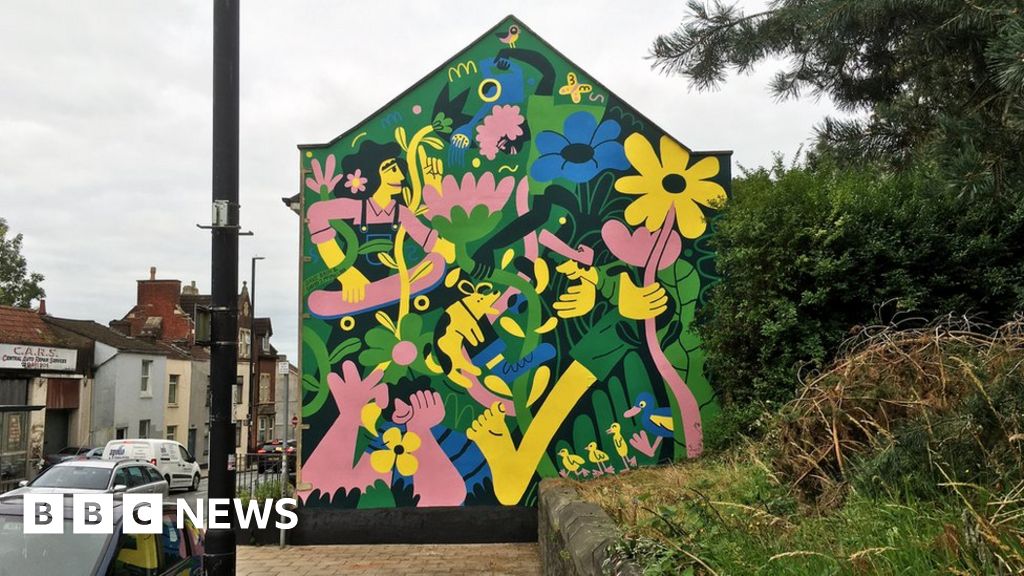 Dave BainA giant mural celebrating the joys of getting outside into the great outdoors has been hand-painted onto the side of a house in Bristol.