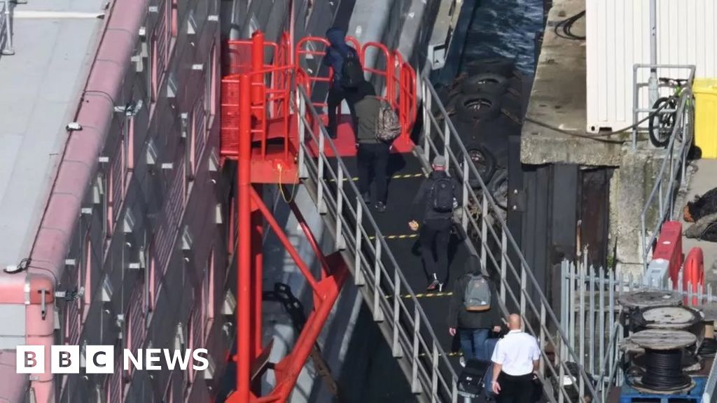 A coach carrying the migrants arrived at the Bibby Stockholm in Portland, Dorset, shortly before 13:00 BST on Thursday.
