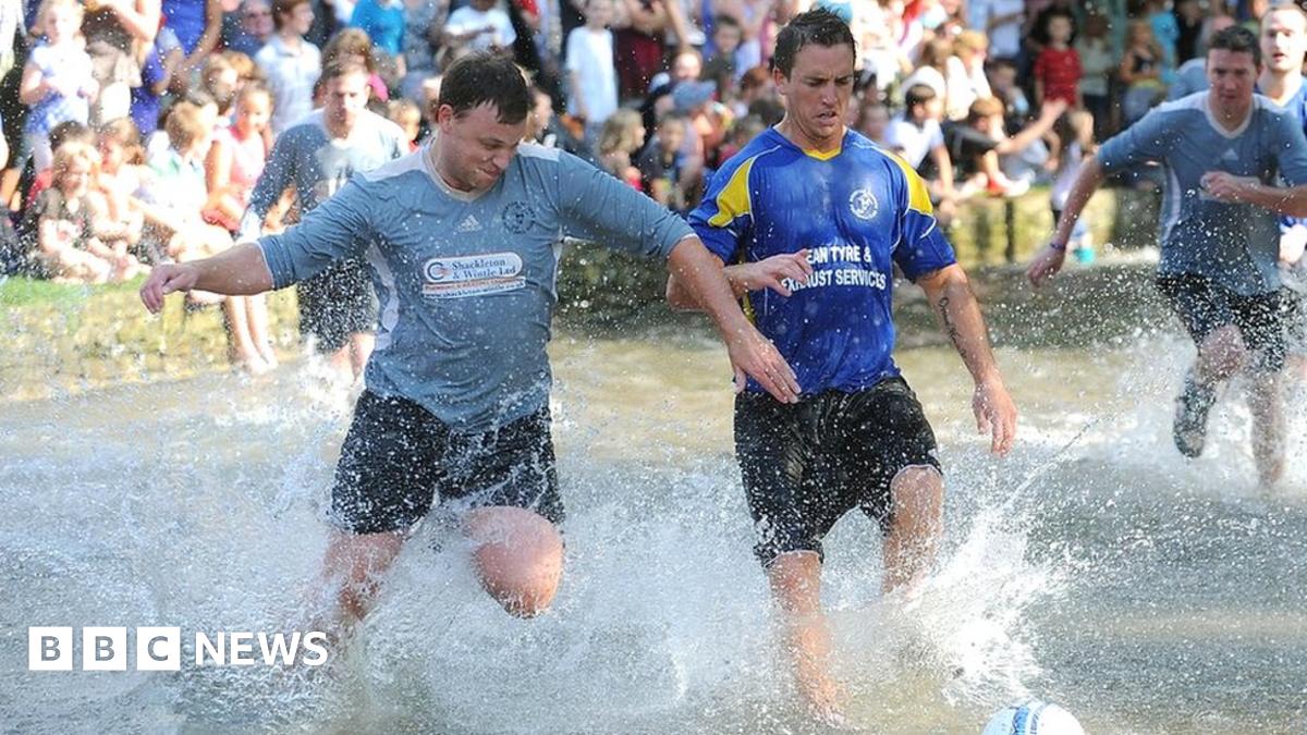 Each year, goalposts are set up on the river - between the village's two main bridges - and the two sides take part in a 30-minute splashabout.