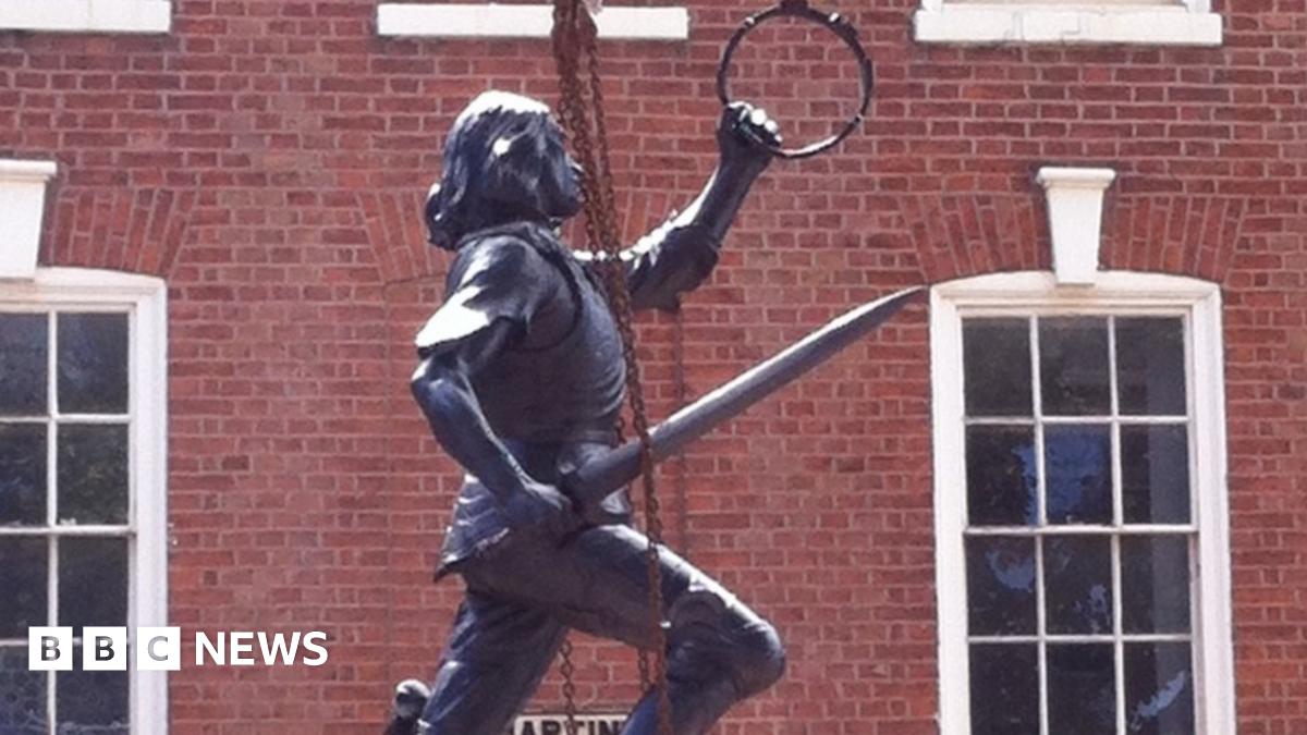 The statue, with a new, full-length sword, was donated to the city by the Richard III Society in 1980