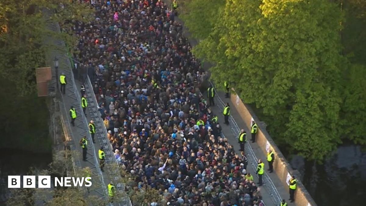 People gathered from 06:00 BST to listen to Hymnus Eucharisticus being sung from Magdalen College tower.